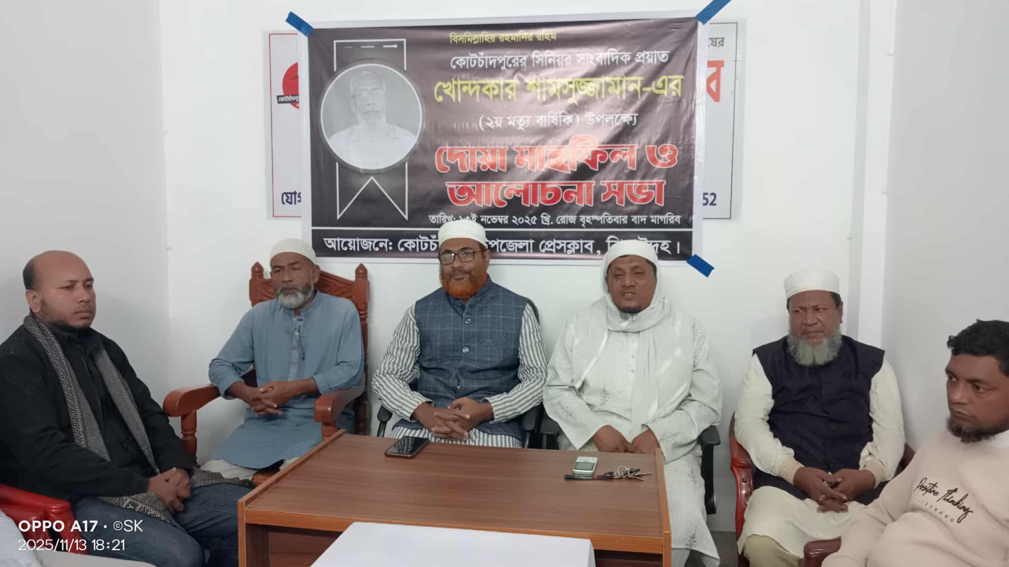 কোটচাঁদপুরে প্রয়াত সাংবাদিক খোন্দকার শামসুজ্জামানের দ্বিতীয় মৃত্যুবার্ষিকী উপলক্ষে দোয়া অনুষ্ঠিত