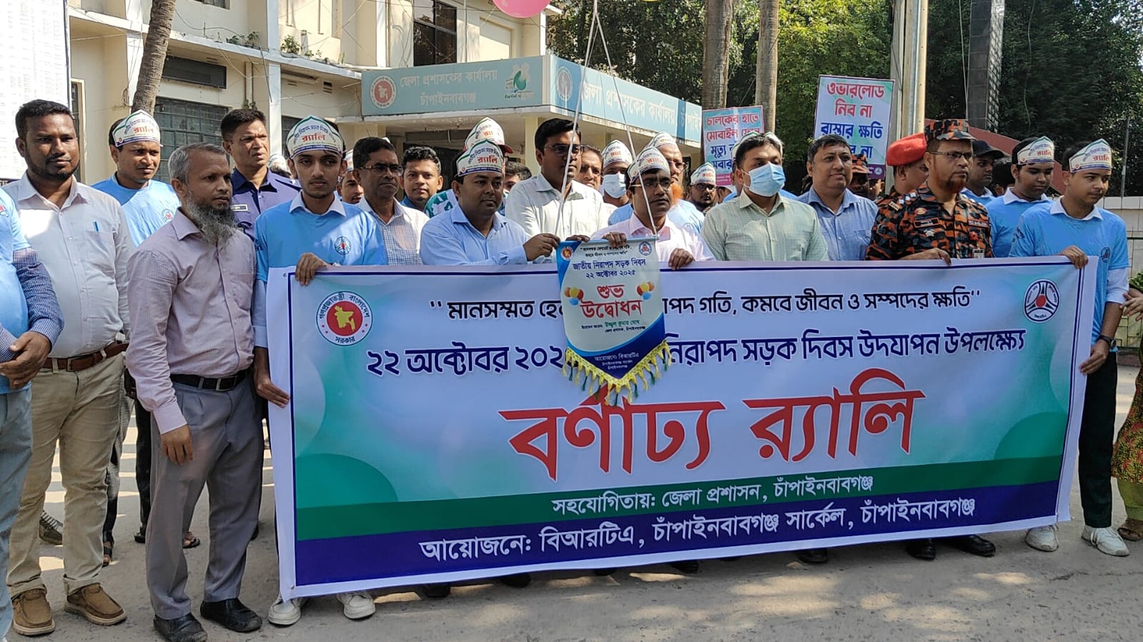 বুধবার (২২ অক্টোবর) সকালে চাঁপাইনবাবগঞ্জ বাংলাদেশ রোড ট্রান্সপোর্ট অর্থরিটি (বিআরটিএ) সার্কেল'র আয়োজনে জেলা প্রশাসকের সার্বিক সহযোগিতায় ডিসি অফিসের কার্যালয় চত্ত্বর থেকে বেলুন উড়িয়ে দিবসের সূচনা করে (বিআরটিএ)। এরপরই একটি বর্ণাঢ্য র্যালি জেলা শহরের গুরুত্বপূর্ণ সড়ক প্রদক্ষিণ শেষে একই স্থানে শেষ হয়। পরে জেলা প্রশাসকের সম্মেলন কক্ষে আলোচনা সভা অনুষ্ঠিত হয়।