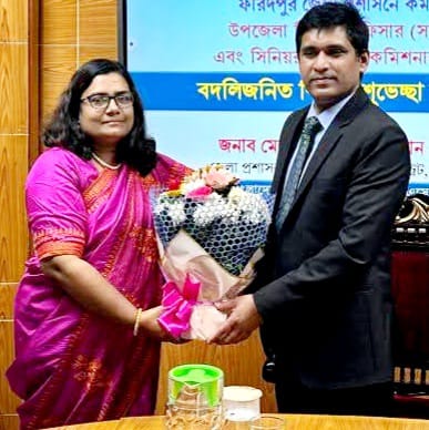 (১ ডিসেম্বর) সোমবার (ইউএনও) ইসরাত জাহান এর বিদায়ী শুভেচ্ছা জানান ফরিদপুরের জেলা প্রশাসক মোহাম্মদ কামরুল হাসান মোল্লা সহ