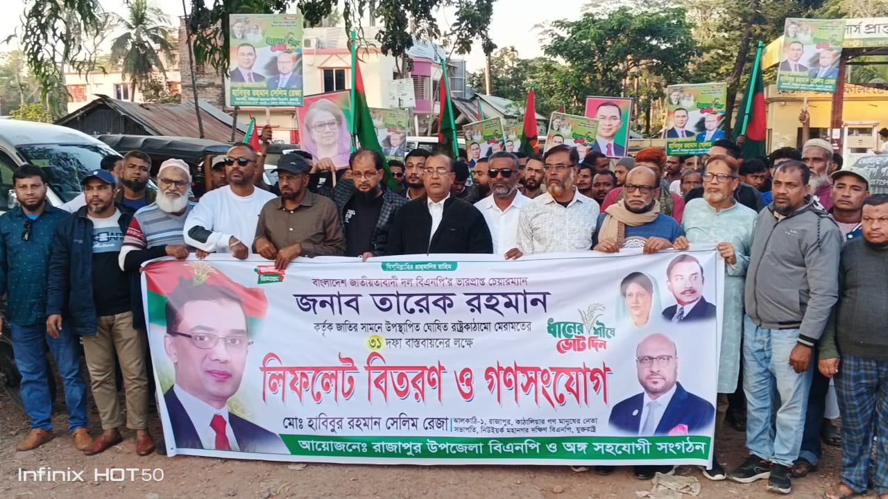 ঝালকাঠির রাজাপুরে বিএনপির ভারপ্রাপ্ত চেয়ারম্যান তারেক রহমান ঘোষিত রাষ্ট্র সংস্কারের ৩১ দফা কার্যকর করার লক্ষ্যে ঝালকাঠি–১ (রাজাপুর–কাঠালিয়া) আসনে দলীয় মনোনয়নপ্রত্যাশী নিউইয়র্ক মহানগর দক্ষিণ বিএনপির সভাপতি হাবিবুর রহমান সেলিম রেজার পক্ষে ব্যাপক গণসংযোগ, লিফলেট বিতরণ ও পথসভা অনুষ্ঠিত হয়েছে। মঙ্গলবার বিকেল থেকে বাগড়ি বাজার, থানা মোড়, স্কুল মার্কেট, ডাকবাংলো মোড়, উপজেলা মার্কেট, গোডাউন রোড, বাদুরতলা মোড়, বাইপাস এলাকা সহ রাজাপুর পৌরসভার বিভিন্ন গুরুত্বপূর্ণ স্থানে নেতাকর্মীরা সাধারণ মানুষের হাতে হাতে ৩১ দফার লিফলেট বিতরণ করেন।