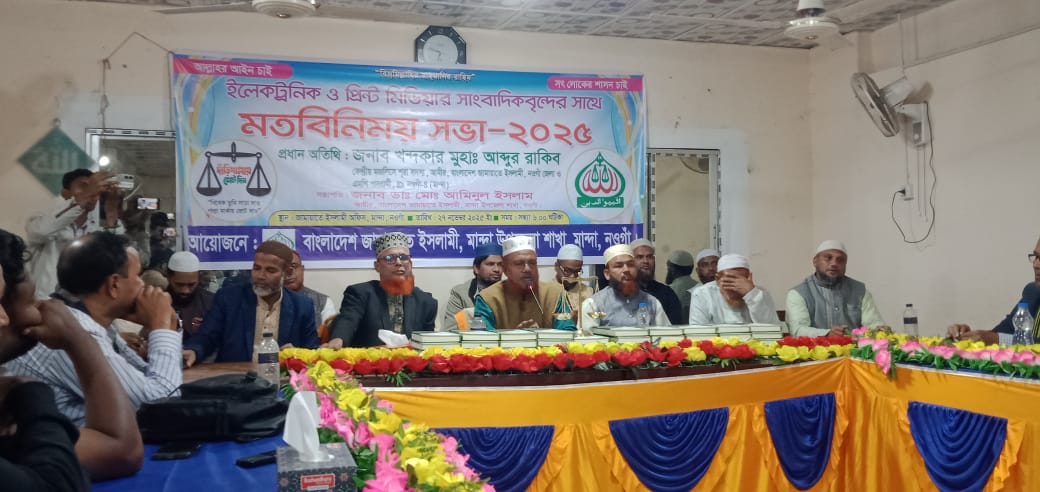 নওগাঁর মান্দায় ইলেকট্রিক ও প্রিন্ট মিডিয়ার সাংবাদিকবৃন্দের সাথে মতবিনিময়সভা অনুষ্ঠিত হয়েছে। বৃহস্পতিবার সন্ধ্যায় বাংলাদেশ জামায়াতে ইসলামী মান্দা উপজেলা শাখার দলীয় কার্যালয়ে এ মতবিনিময় সভা অনুষ্ঠিত হয়। এসময় বাংলাদেশ জামায়াতে ইসলামী মান্দা উপজেলা শাখার সহকারী সেক্রেটারি ইলিয়াস খান এর সঞ্চলনায় ও আমীর ডা. আমিনুল ইসলামের সভাপতিত্বে মতবিনিময় সভায় প্রধান অতিথি হিসেবে বক্তব্য রাখেন, কেন্দ্রীয় মজলিসে সূরা সদস্য,বাংলাদেশ জামায়াতে ইসলামী নওগাঁ জেলা শাখার আমীর ও জামায়াত মনোনীত সংসদ সদস্য পদপ্রার্থী খন্দকার মুহাঃ আব্দুর রাকিব। এসময় বিশেষ অতিথি হিসেবে বক্তব্য রাখেন, সাংবাদিক নজরুল ইসলাম,রেজাউল ইসলাম ও কাজী কামাল হোসেন প্রমূখ।