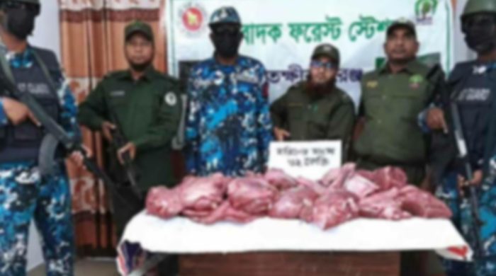 পশ্চিম সুন্দরবন সাতক্ষীরা রেঞ্জ থেকে গোপন সংবাদের ভিত্তিতে কোস্ট গার্ড ও বন বিভাগের সদস্যরা শনিবার ভোরে কপোতাক্ষ নদীতে যৌথ অভিযান চালিয়ে সদ্য ছেলা ৬২ কেজি হরিণের মাংস একখানা ডিঙ্গি নৌকা