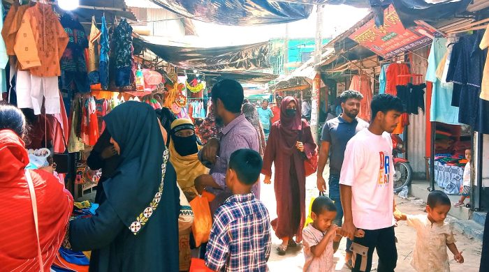 (পবিত্র রমজানের শেষলগ্নে বইতে শুরু করেছে ঈদের আমেজ। ঈদের আনন্দটুকু পরিবারের সাথে ভাগাভাগি করে নিতে প্রিয় জনের জন্য পছন্দের পোশাক কিনতে ক্রেতাদের ক্লান্তিকর ছুটাছুটি। চৈত্র মাসের শুরুতেই উত্তপ্ত রোদ, ঝঁাঝালো