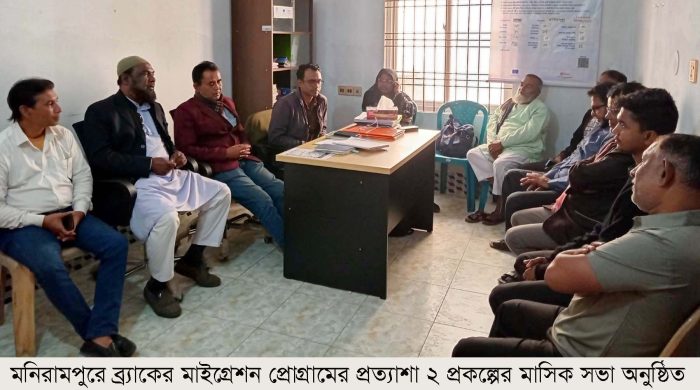 মনিরামপুরে ব্র্যাকের মাইগ্রেশন প্রোগ্রামের প্রত্যাশা-২ প্রকল্পের আওতায় প্রবাস বন্ধু ফরমের মাসিক কর্মশালা অনুষ্ঠিত হয়েছে। সোমবার দুপুর ১২টায় মণিরামপুর পৌরশহরের সালাম প্লাজায় ব্র্যাক মাইগ্রেশন প্রত্যাশা কার্যালয়ে ইউরোপীয় ইউনিয়ন ও বেসরকারি উন্নয়ন