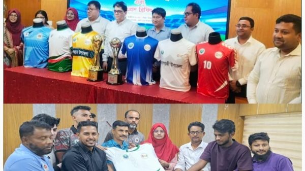 আবুল হাসনাত তুহিন ফেনী:- আগামীকাল ১৪ সেপ্টেম্বর বিকাল ২.৩০ মিনিটের সময় মাঠে গড়াচ্ছে ফেনী জেলা প্রশাসক গোল্ডকাপ ফুটবল টুর্নামেন্ট। এই উপলক্ষে জেলা প্রশাসক এর সম্মেলন কক্ষে জার্সি ও ট্রফি উন্মোচনে