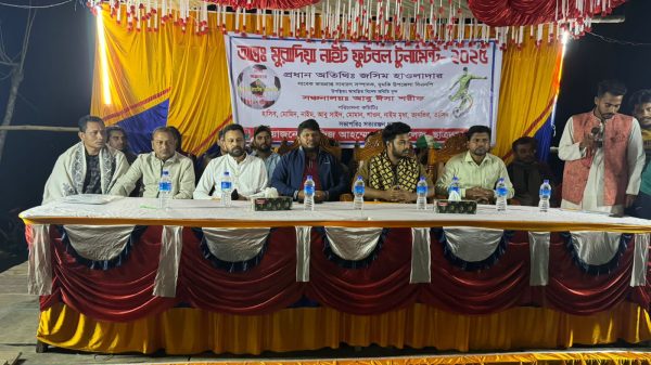 নওগাঁ প্রতিনিধি: নওগাঁর মান্দায় মরহুম নাজিমুদ্দিন পাইক স্মরণে আয়োজিত স্মৃতি ফুটবল টুর্নামেন্টের উদ্বোধন করা হয়েছে। বৃহস্পতিবার (৯ অক্টোবর) বিকেলে উপজেলার চকভোলাই ডাঙ্গাপাড়া মাঠে স্থানীয় সংগঠন চকভোলাই ডাঙ্গাপাড়া ইয়াং জেনারেশন এর