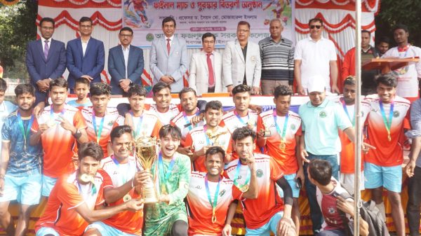 মাহিদুল ইসলাম ফরহাদ চাঁপাইনবাবগঞ্জ জেলা প্রতিনিধি আজ ৩০ নভেম্বর রবিবার আদিনা ফজলুল হক সরকারি কলেজের আন্তঃবিভাগ ফুটবল টুর্নামেন্টের ফাইনাল খেলা অনুষ্ঠিত হয়। আন্ত:বিভাগ ফুটবল টুর্নামেন্ট-২০২৫ ফাইনালে ইতিহাস বিভাগ ১-০ গোলে