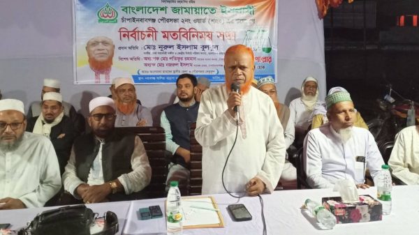 মাহিদুল ইসলাম ফরহাদ চাঁপাইনবাবগঞ্জ জেলা প্রতিনিধি চাঁপাইনবাবগঞ্জ-৩ (সদর) আসনের পৌরশহরের ২নং ওয়ার্ডে জামায়াতে ইসলামীর নির্বাচনী মতবিনিময় সভা করেন। সভাস্থলটি হাজার-হাজার নারী পুরুষের উপস্থিতিতে মুখরিত। চাঁপাইনবাবগঞ্জ পৌর আমীর হাফেজ গোলাম রাব্বানীর