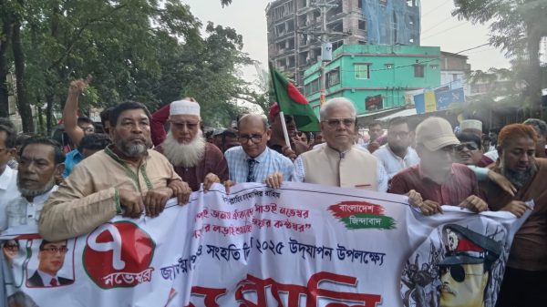 নিরঞ্জন মিত্র (নিরু) (ফরিদপুর জেলা প্রতিনিধিঃ ঐতিহাসিক ৭ই নভেম্বর মহান বিপ্লব ও সংহতি দিবস উপলক্ষে, ফরিদপুরে সমাবেশ ও শোভাযাত্রা অনুষ্ঠিত হয়েছে। ফরিদপুর জেলা ও মহানগর বিএনপি’র যৌথ উদ্যোগে, (৭ নভেম্বর)