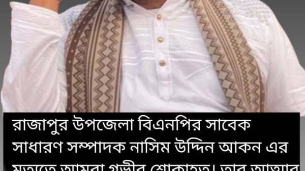 ফাতিমা আক্তার মিম : রাজাপুর উপজেলা বিএনপির সাবেক সাধারণ সম্পাদক নাসিম উদ্দিন আকনের মৃত্যুতে গভীর শোক প্রকাশ করেছে নিউইয়র্ক মহানগর দক্ষিণ বিএনপি সভাপতি ও ঝালকাঠি-১ আসনের ধানের শীষের মনোনয়ন প্রত্যাশী