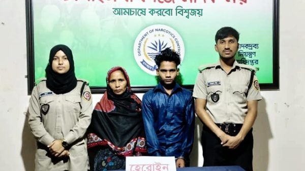 মাহিদুল ইসলাম ফরহাদ চাঁপাইনবাবগঞ্জ জেলা প্রতিনিধি চাঁপাইনবাবগঞ্জে সদর মডেল থানাধীন দশরশিয়া গ্রামে( ১৩ অক্টোবর) সোমবার সকাল সাড়ে আট ঘটিকায় মৃত আমির হোসেনের বসতবাড়ী তল্লাশি করে ৯.৫ গ্রাম হেরোইনসহ মা ও