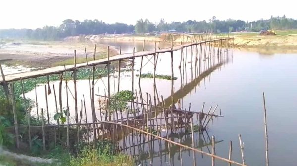 মোঃ ইমরান ইসলাম, নীলফামারী জেলা প্রতিনিধি নীলফামারীর কিশোরগঞ্জ উপজেলার বাহাগিলী ইউনিয়নের জড়িয়াল ঘাটে চাঁড়াল কাটা নদীর ওপর নির্মিত কাঠের ব্রিজটি গত ছয় মাস ধরে ভেঙে পড়ে আছে। এতে ১০টি গ্রামের
